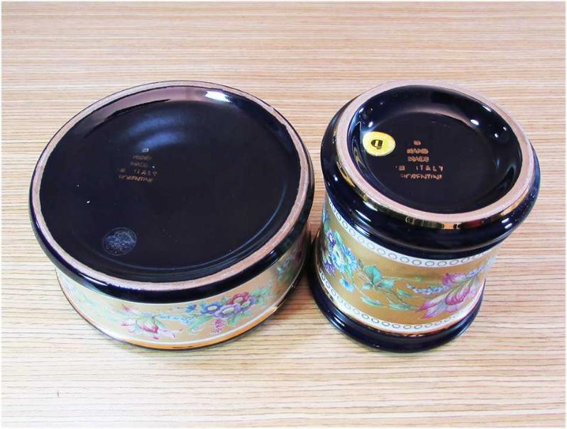 VİNTAGE, İTALYAN "FLORENTINE" PORSELEN KOBALT BÜYÜK KÜLLÜK VE MUMLUK YA DA KUTU İÇİNDE MUM KULLANILMIŞ HAND MADE,ÇEPEÇEVRE KENARLARI ÇİÇEK MOTİFLERİ TAMAMEN EL İŞİ, ALTIN KONTURLU,TABANI DAMGALI,SAĞLAM VE TEMİZLER DETAYLARI ÜRÜN RESİMLERİNDE, RESİMLERİN ÜZERİNDEKİ BEYAZLIKLAR,IŞIK YANSIMALARIDIR, KÜLLÜK GENİŞLİĞİ 11,5cm, MUMLUĞUN KENAR YÜKSEKLİĞİ 9cm,GENİŞLİĞİ 8cm