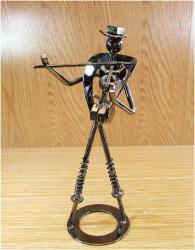 VİNTAGE CİVATA,SOMUN VE KALIN METALDEN TAMAMEN EL İŞÇİLİĞİ İLE YAPILIP KOYU RENK OLARAK NİKELAJLANMIŞ ÇOK İLGİNÇ VE ÇOK TEMİZ BÜYÜK BİBLO-HEYKEL TABAN GENİŞLİĞİ 8cm YÜKSEKLİĞİ 25cm