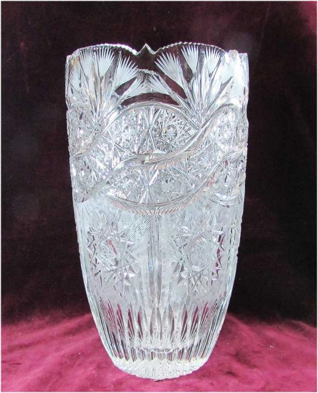 1970-80 LERDEN ÇOK ŞIK VE ÇOK GÜZEL HARİKA KESME İŞÇİLİKLİ, BÜYÜK BOY KRİSTAL KESME CAM VAZO AĞIR VE KALIN YAPILI, KUSURSUZ,SAĞLAM VE TEMİZ AĞIZ GENİŞLİĞİ 14cm,YÜKSEKLİĞİ 26cm