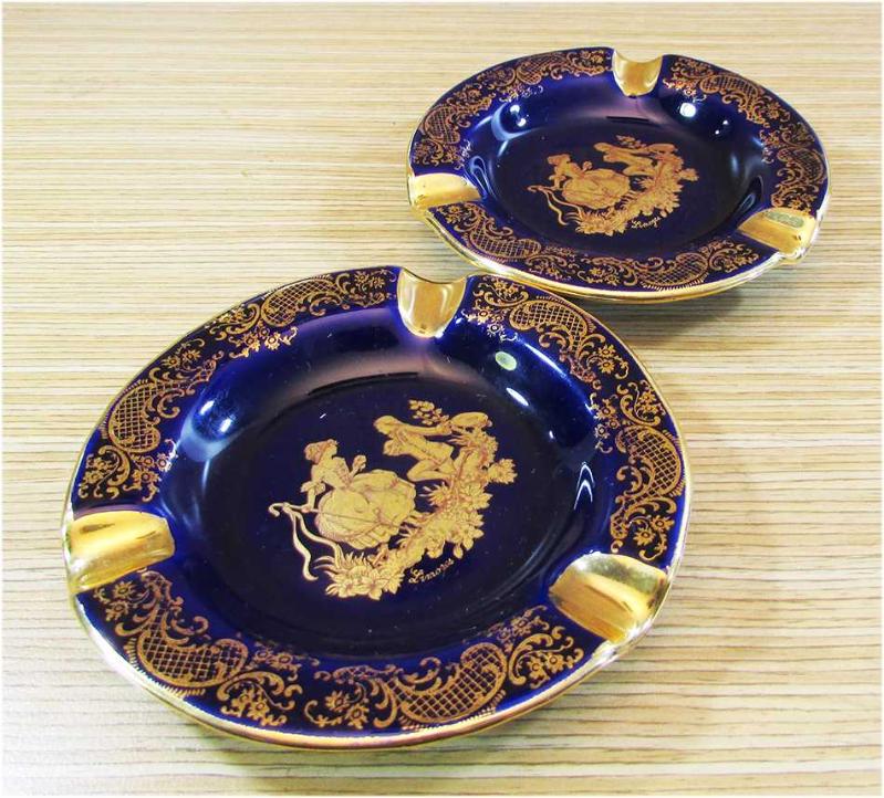 VİNTAGE, ÇOK GÜZEL "LİMOGES" PORSELEN KOBALT ÇİFT BÜYÜK KÜLLÜK, ÇOK GÜZEL ALTIN KONTUR FİGÜRLÜ, ARKALARI DAMGALI VE LOGOLU KUSURSUZ,SAĞLAM VE TEMİZLER, ÜRÜN RESİMLERİNİN ÜZERİNDE GÖRÜLEN BEYAZLIKLAR, IŞIK YANSIMALARI OLUP KUSUR DEĞİLDİR, ÇAP GENİŞLİKLERİ 11,5cm,