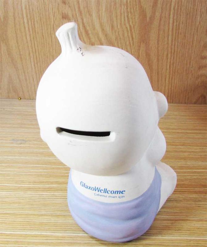 ESKİLERDEN, BEBEK FORMLU BİSKÜVİ SERAMİK YAPILI GÜZEL KUMBARA, BİR FİRMA EŞANTİYONU SAĞLAM VE TERTEMİZ, GENİŞLİK 9cm,YÜKSEKLİK 17cm