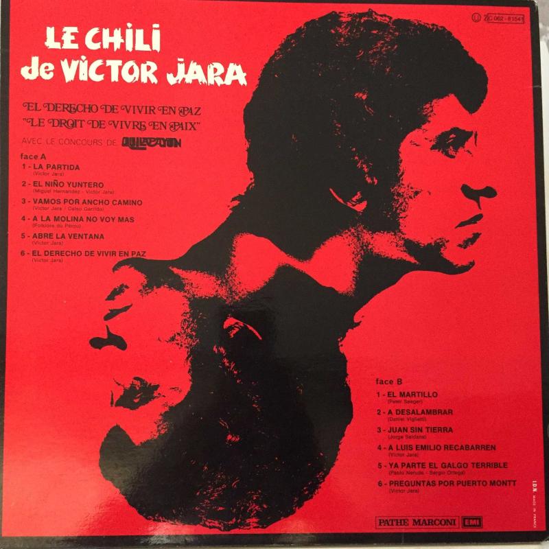 A1 La Partida Written-By – Victor Jara 3:13 A2 El Niño Yuntero Written-By – Miguel Hernandez*, Victor Jara 3:43 A3 Vamos Por Ancho Camino Written-By – Celso Garrido*, Victor Jara 3:15 A4 A La Molina No Voy Mas Written-By [Folklore Du Pérou] – Traditional 3:13 A5 Abre La Ventana Written-By – Victor Jara 3:56 A6 El Derecho De Vivir En Paz Written-By – Victor Jara 4:35 B1 El Martillo Written-By – Peter Seeger* B2 A Desalambrar Written-By – Daniel Viglietti B3 Juan Sin Tierra Written-By – Jorge Saldana* B4 A Luis Emilio Recabarren Written-By – Victor Jara B5 Ya Parte El Galgo Terrible Written-By – Pablo Neruda, Sergio Ortega B6 Preguntas Por Puerto Montt Written-By – Victor Jara