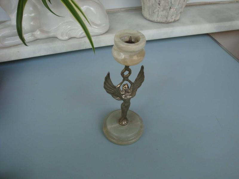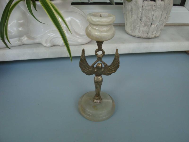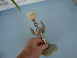 " Vintaga / 80's " MELEK FİGÜRLÜ ( PİRİNÇ DÖKÜM GÖVDE ) MERMER KAİDELİ ŞAMDAN " Ürün HASARSIZ / HATASIZ durumdadır "