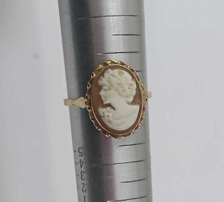Vintage 14 Ayar Altın Hakiki Shell Cameo Bayan Portre Yüzük İtalya Ölçü 7 başlıklı antika/koleksiyon objesinin menşei belirtilmemiştir. 2000 ve sonrası dönemine aittir.