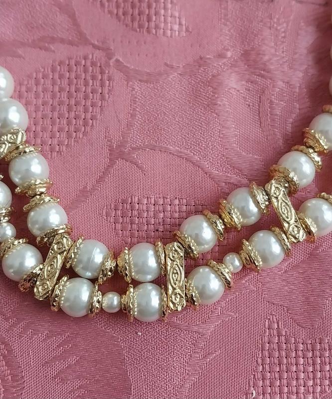 1990 yılında Rusya’dan alınmış, dönemin Avrupa couture tarzını taşıyan zarif ve gösterişli bir lüks simüle inci kolye. Büyük ve küçük boy inci formları, gold ton ara parçalar ve eski dönem kilit detayı ağır ve kaliteli bir vintage parçadır. Öne Çıkan Özellikler 1980–1990 dönemi vintage Rusya’dan alınmış (muhtemelen Avrupa üretimi) Ağır ve parlak yüksek kaliteli cam inci Altın tonlu ayrıntılı ara parçalar Çok sıralı, dikkat çekici tasarım Eski dönem özel kilit Şık, dramatik, koleksiyonluk görünüm Etkinlikler, davetler, gece kombinleri için ideal Şu an üretimi olmayan bir model Durum Taneler parlak, yüzeyler temiz, genel kondisyon çok iyi. Kırık, dökülme veya kararma yok. Bu tarz kaliteli vintage cam inciler günümüzde bulunması zor parçalardır. Gerçek inci görünümüne yakın parlaklık, ağırlık ve “couture” havasıyla koleksiyon değeri taşır. 45 cm.