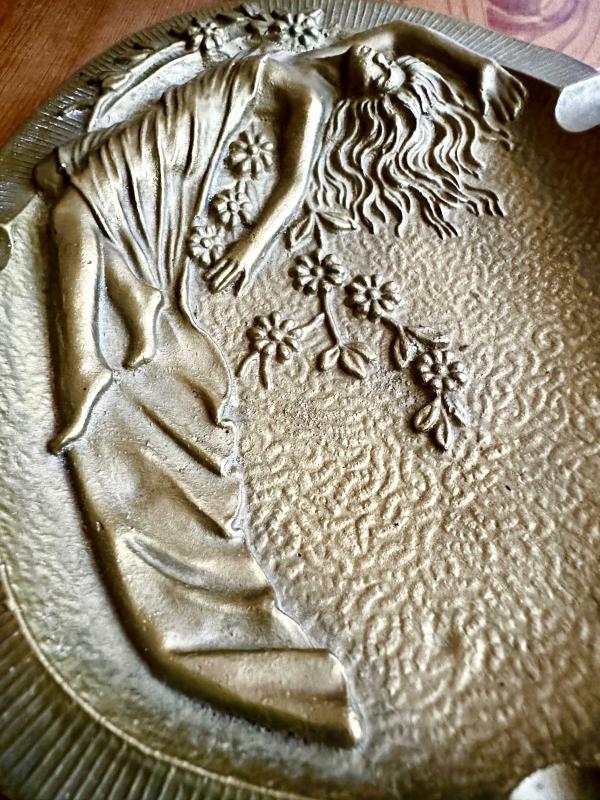 1960'lar dönemi Antik Art Nouveau nadir koleksiyonluk antik kadın ve çiçek figürlü,mükemmel işçilikle yapılmış bronz eski dönem İtalyan kül tablası… koleksiyon parçasıdır … 760 gr ağırlıkta , 18,3 cm x 15 cm ölçülerinde çok zarif, ağır ve dekoratif bir parça… #vintage #dekoratif #eskidönem #koleksiyon #koleksiyonluk #dekorasyon #nadirbulunan #antika #sanat #bronz #antikaobje #orijinal #nadir