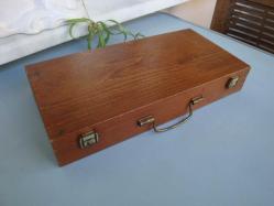 " Vintage - 60's / 70's " PİRİNÇ MENTEŞELİ & KİLİT TERTİBATLI KAPAKLI & PİRİNÇ KULPLU AHŞAP KUTU ( 34 - 17 - 5,3 )