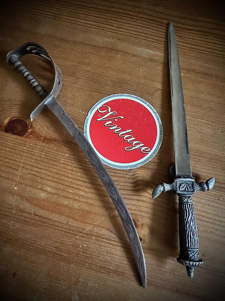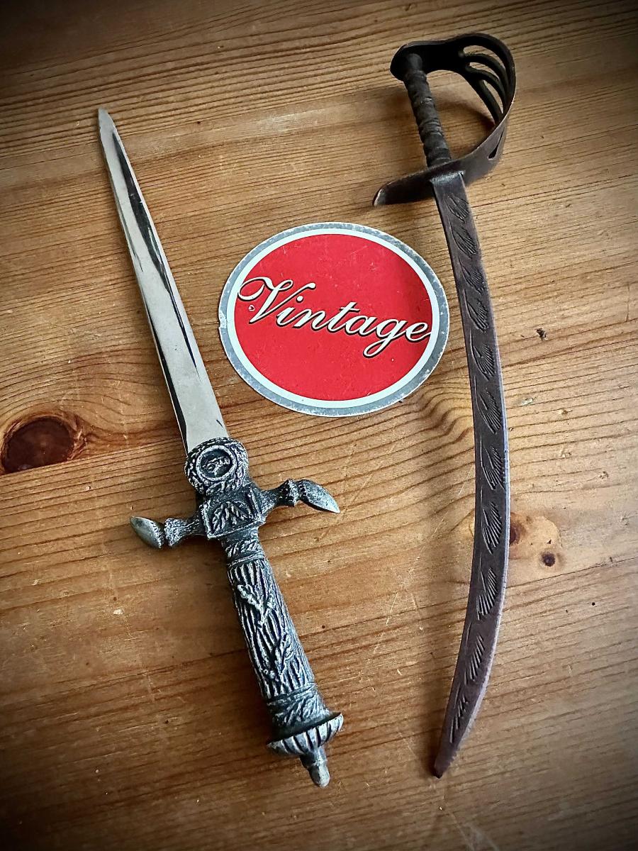 Vintage 2 Ad. Koleksiyonluk Minyatür Kılıç ; 1 - Vintage 70'ler Çok Nadir Bronz Kalem işçilikli 19cm boyunda Korsan Kılıcı...KOLEKSİYONLUK...Nadir rastlanan bir parçadır… 2 - Vintage 70’ler dönemi Alman yapımı 20cm. boyunda koleksiyonluk Minyatür Kılıç… Nadir rastlanan bir parçadır… #vintage kılıç #zarf açacağı #koleksiyon #nadir #70’ler #minyatür kılıç #korsan kılıcı #bronz kılıç #koleksiyonluk objeler