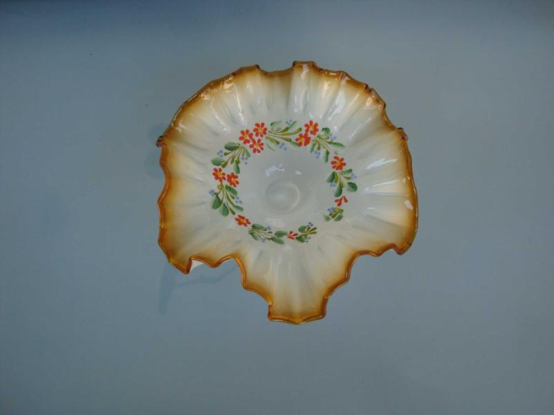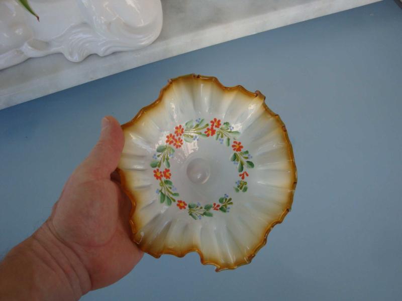 " Vintage - 70's / 80's " FIRFIRLI ( MARUL ) MİNELİ OPALİN CAM LOKUMLUK ( HARİKA EL BOYAMA ÇİÇEK DESENLERİ ) - Çap : 19.5 cm. - HİÇ KULLANILMAMIŞ, 2 yıl önce kitantik’te satışa sunulmuştur.