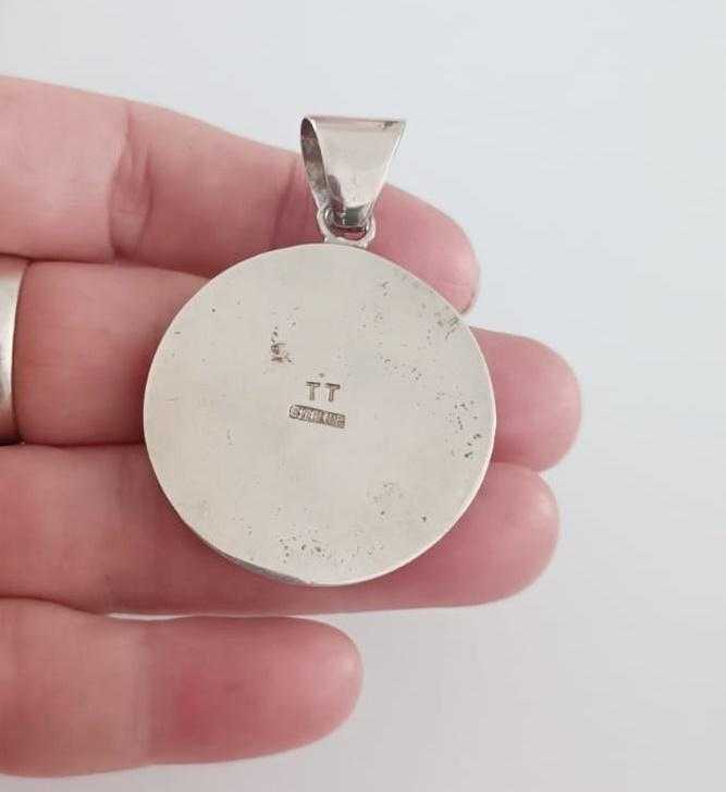 Ebatlar askı ile beraber 56mmx 38mm. Damga T.T. STERLİNG. Ağırlık 19,20 gram. Kondisyonu oldukça iyi. Detaylar için resimlere dikkatlice bakınız. Üzeri opal turkuaz gibi değerli taşlarla bezenmiş. Muhteşem bir koleksiyon parçası.... Amerika dan satın alınmıştır. 0096 *Ürünler %100 Orijinaldir.! ? *Yukarıda anlatımı yapılan ürünü satın almadan önce aklınıza takılan soruları hiç çekinmeden sorabilirsiniz.En kısa zamanda seve seve cevap veririz. ? *Sattığımız ürünlerin hepsi tarafımızdan garantilidir.Herhangi bir hasar veya kusur durumunda Kargo Görevlisine tutanak tutturarak İade etme garantisi vardır. ? *Hijyen nedeniyle İadesi yapılamayan ürünler şunlardır; ----Kozmetik ürünleri (Krem, losyon, parfüm, makyaj malzemeleri,vs) ----Mayolar ,İç Çamaşırları ve Giyim Eşyaları. ? *Kullanılmış, Vintage veya Antika olarak belirttiğimiz ürünler hiçbir zaman SIFIR ürün kondisyonunda değildir ve olmaları da beklenemez. Bu tip ürünlerin kondisyon detayı tarafımızdan ayrıntılı olarak verilecek ve mümkün olduğunca çok resimlenecektir.Vintage ve Antika ürünler,son 20 yıl içinde Amerika nın çeşitli Eyaletlerinde Antika evlerinden, Müzayede evlerinden veya Estate Sale olarak geçen Satış yerlerinden alınmıştır ve kendi özel kolleksiyonumuzdandır. *Patinasını kaybetmemesi için hiçbir antika ürünü temizlemiyoruz. ? *Alıcılar bizden ürün alırken bu şartları kabul etmiş demektir.! ! İYİ ALIŞVERİŞLER!!! ?