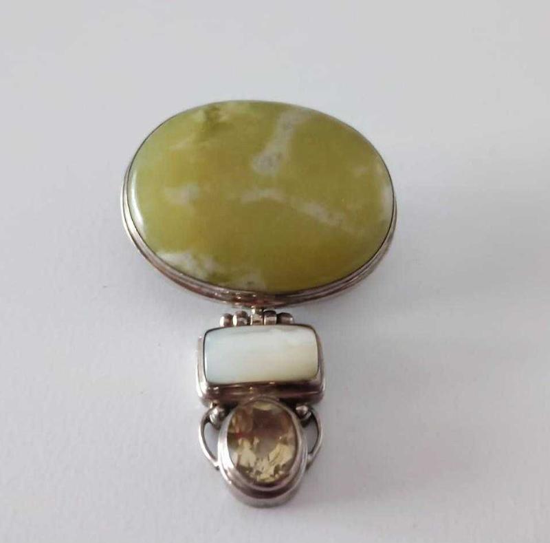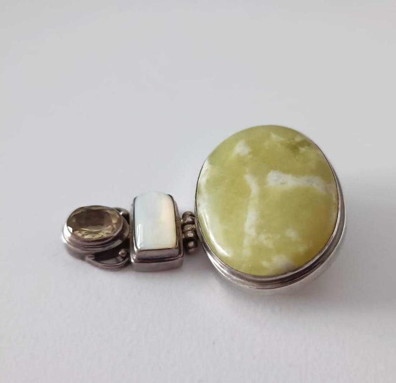 Vintage 925 Gümüş Sedef Sitrin Serpentin Taşlı Kolye Ucu ADAM FİERRO Navajo Amerika başlıklı ürün, Antika-Koleksiyon, Hobi-Sanat > Antika > Antika Takı ve Mücevher > Kolye kategorisinde İkinci El olarak satışa sunulmuştur.