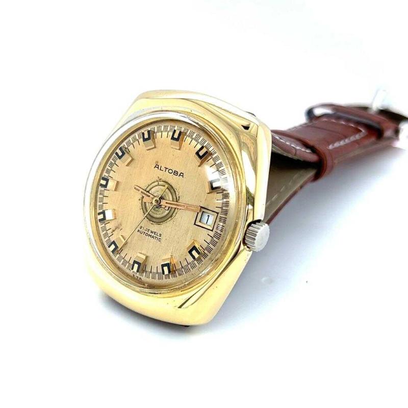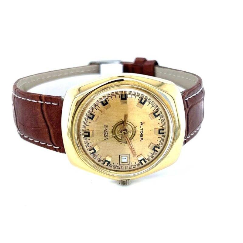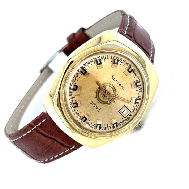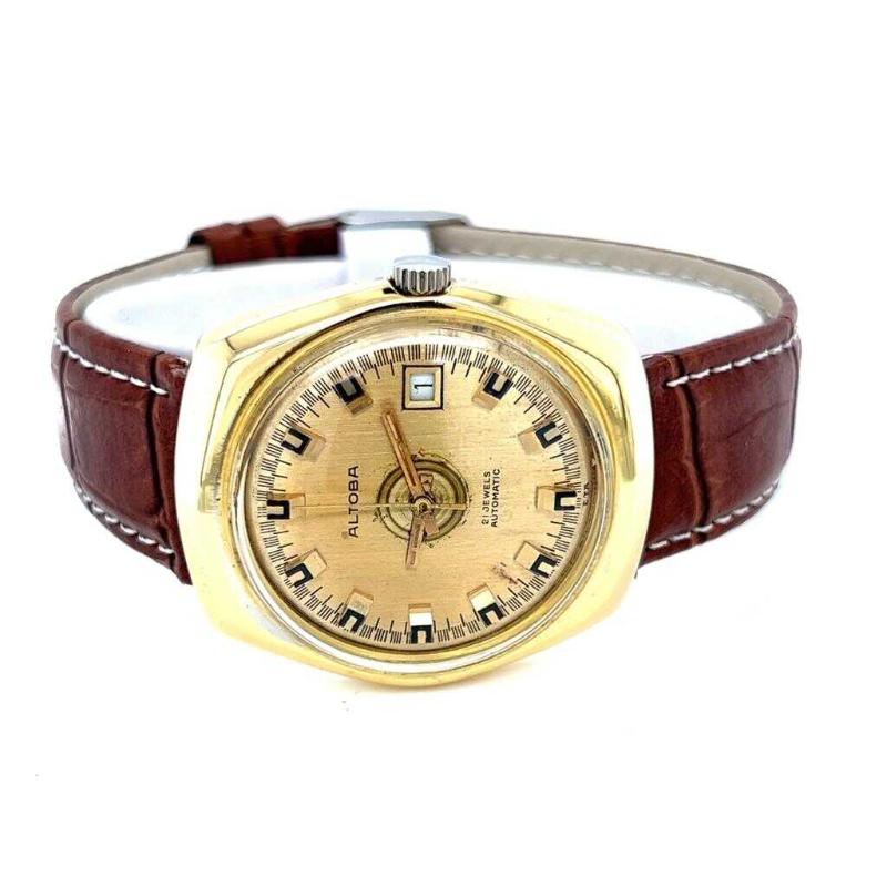 Vintage ALTOBA Altın Kaplama Otomatik Kol Saati EBY310 başlıklı antika/koleksiyon objesinin menşei belirtilmemiştir. Objenin ait olduğu dönem bilinmeketedir.