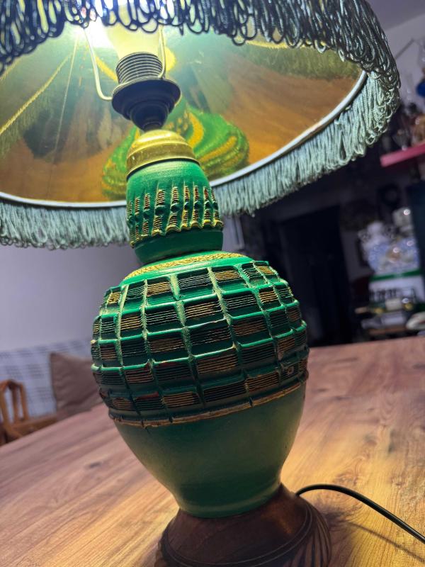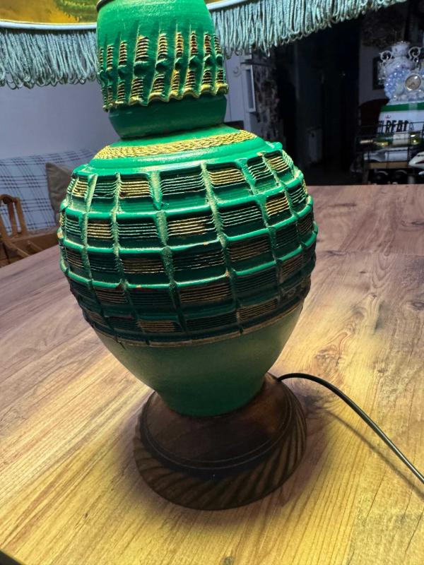 Vintage Ahşap Yeşil El işçiliği Abajur Masa Lambası Retro Şık 70'ler retro/vintage tasarım. Dönem ruhunu yansıtan, saçağı püsküllü orijinal krem rengi şapka. Çalışır vaziyette, temiz ve bakımlı. Kablosu ve anahtarı sağlamdır. Boy Şapkasız 42 cm Şapkalı 50 cm Şapka çapı 35 cm, 7 gün önce kitantik’te satışa sunulmuştur.