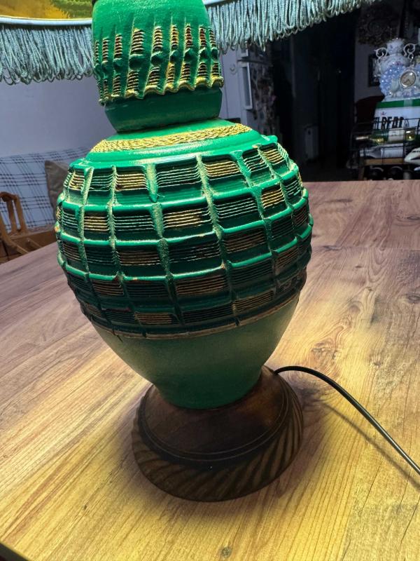 Vintage Ahşap Yeşil El işçiliği Abajur Masa Lambası Retro Şık 70'ler retro/vintage tasarım. Dönem ruhunu yansıtan, saçağı püsküllü orijinal krem rengi şapka. Çalışır vaziyette, temiz ve bakımlı. Kablosu ve anahtarı sağlamdır. Boy Şapkasız 42 cm Şapkalı 50 cm Şapka çapı 35 cm başlıklı ürün, Antika-Koleksiyon, Hobi-Sanat > Ev Dekorasyonu ve Aksesuar kategorisinde İkinci El olarak satışa sunulmuştur.