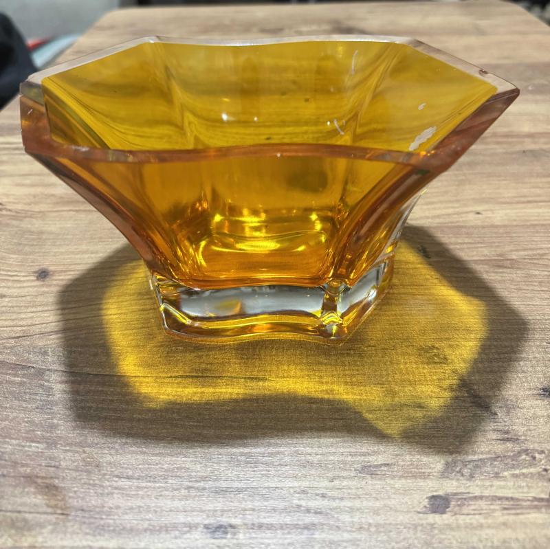 Vintage Amber Rengi Cam Kase / Gondol Retro Amber (Kehribar) Rengi Kristal Kesim Cam Kase Göz alıcı amber (bal rengi) tonlarında, kalın ve ağır camdan üretilmiştir. • Modern ve geometrik kesim formuyla vintage bir tasarıma sahiptir. • Meyvelik, şekerlik veya dekoratif sunum tabağı olarak kullanılabilir. • Kırık veya çatlağı yoktur, kondisyonu mükemmeldir. 22 x 13 cm yükseklik 11 cm