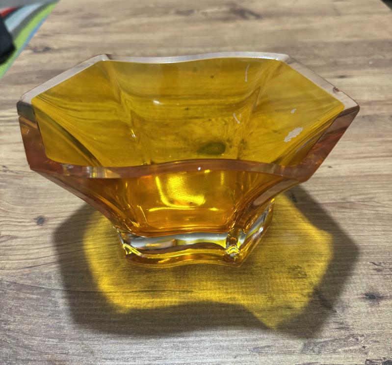 Vintage Amber Rengi Cam Kase / Gondol Retro Amber (Kehribar) Rengi Kristal Kesim Cam Kase Göz alıcı amber (bal rengi) tonlarında, kalın ve ağır camdan üretilmiştir. • Modern ve geometrik kesim formuyla vintage bir tasarıma sahiptir. • Meyvelik, şekerlik veya dekoratif sunum tabağı olarak kullanılabilir. • Kırık veya çatlağı yoktur, kondisyonu mükemmeldir. 22 x 13 cm yükseklik 11 cm, en son 3 ay önce güncellenmiştir.