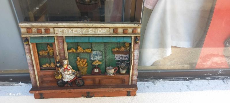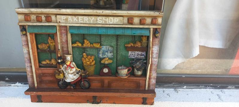 Vintage Bakery shop tümüyle ei yapımı tablo askılık haliyle başlıklı antika/koleksiyon objesi Avrupa menşe’lidir. Objenin ait olduğu dönem bilinmeketedir.