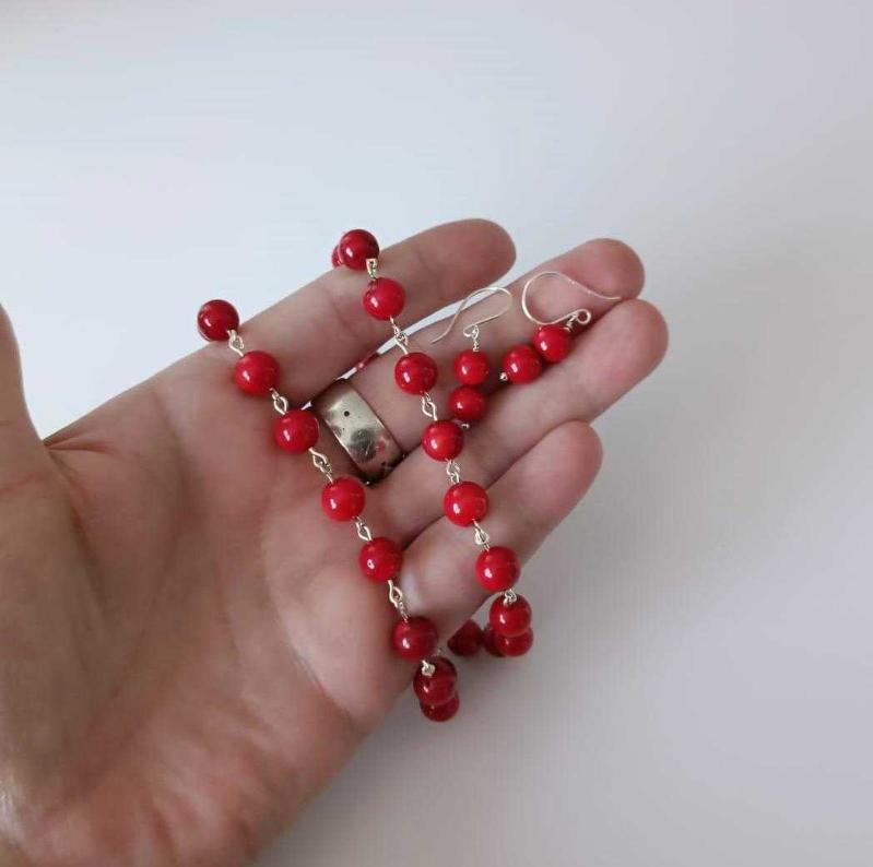 Vintage El Yapımı Kırmızı Mercan Gümüş Kaplama Kolye Küpe Set, 10 gün önce kitantik’te satışa sunulmuştur.
