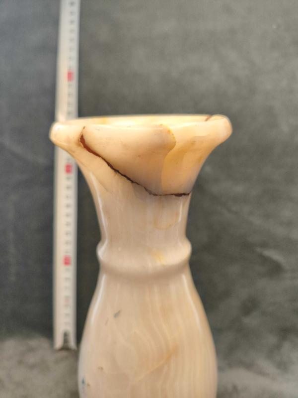 Vintage El Yapımı Oniks Mermer Vazo (Dönem Parçası, Defolu) başlıklı antika/koleksiyon objesi Avrupa menşe’lidir. 1950-1999 arası dönemine aittir.