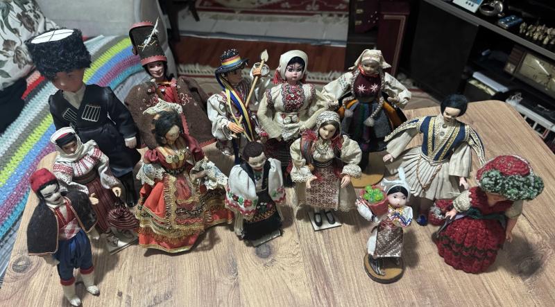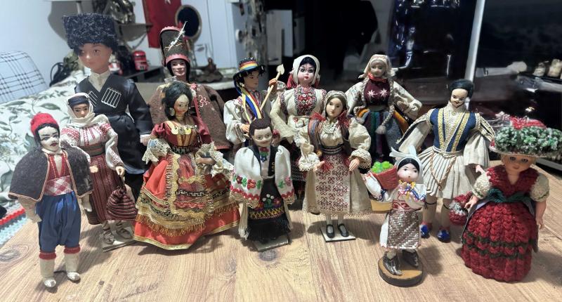 Vintage El yapımı geleneksel kıyafetli etnik bebekler. Farklı ülke ve yörelere ait folklorik giysiler, detaylı işçilik. Koleksiyonluk ve dekoratif amaçlı uygundur. Kosova’dan satın alındı. Boyları 17 cm ve 31 cm arasında değişik ölçülerde Toplam 13 Adet, en son 2 ay önce güncellenmiştir.