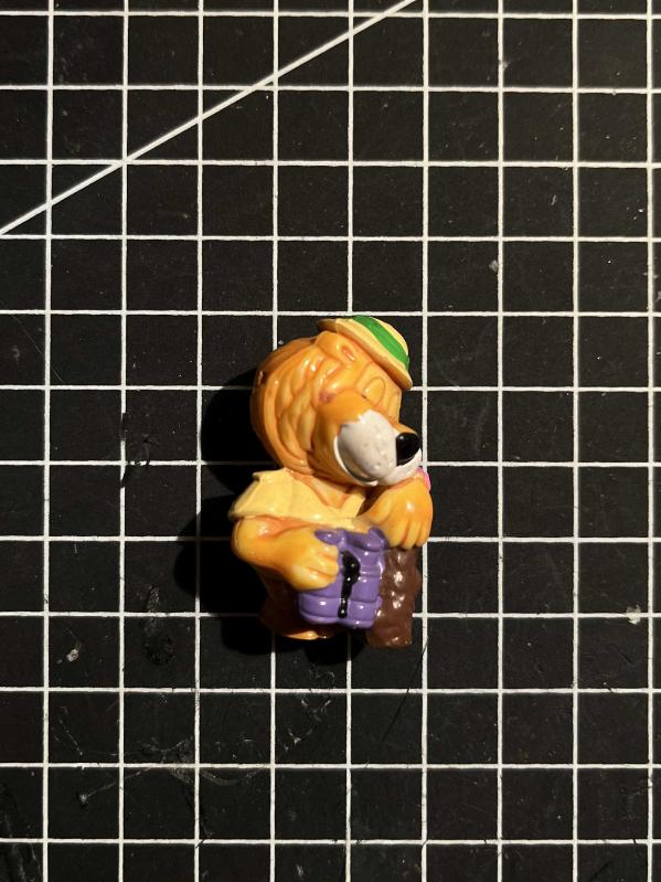 1993 yılından saate bakan izci aslan figürü koleksiyonluk Kinder Sürpriz oyuncağı. Genel olarak boyası fotoğraflarda görüldüğü gibi iyi durumdadır.