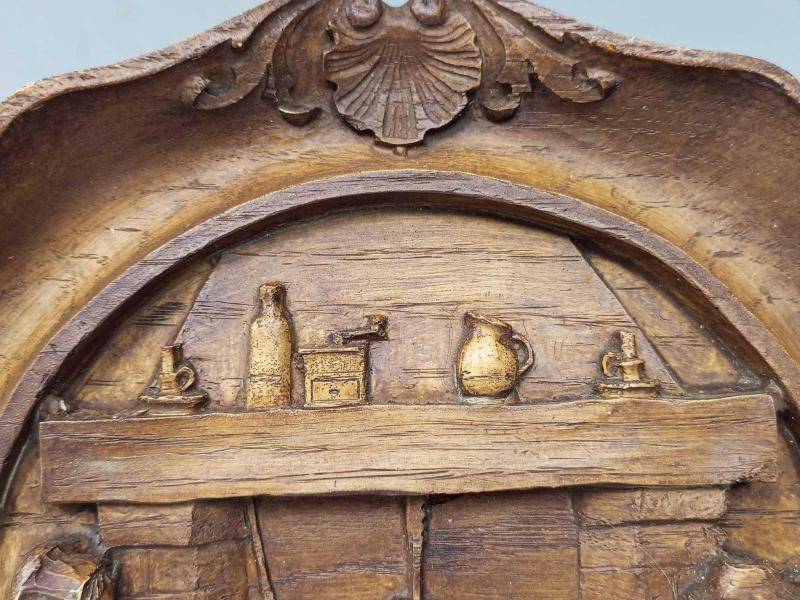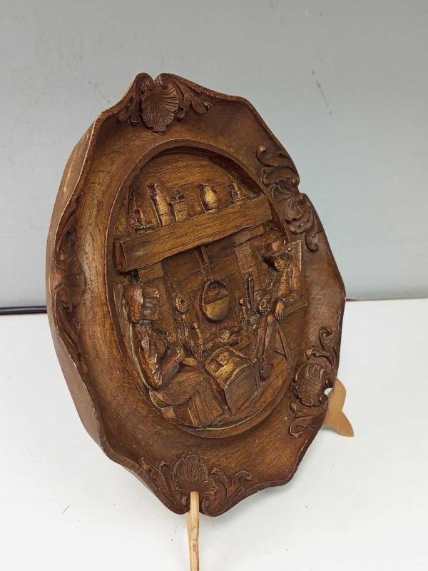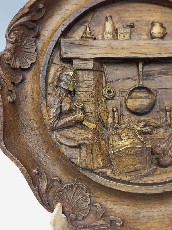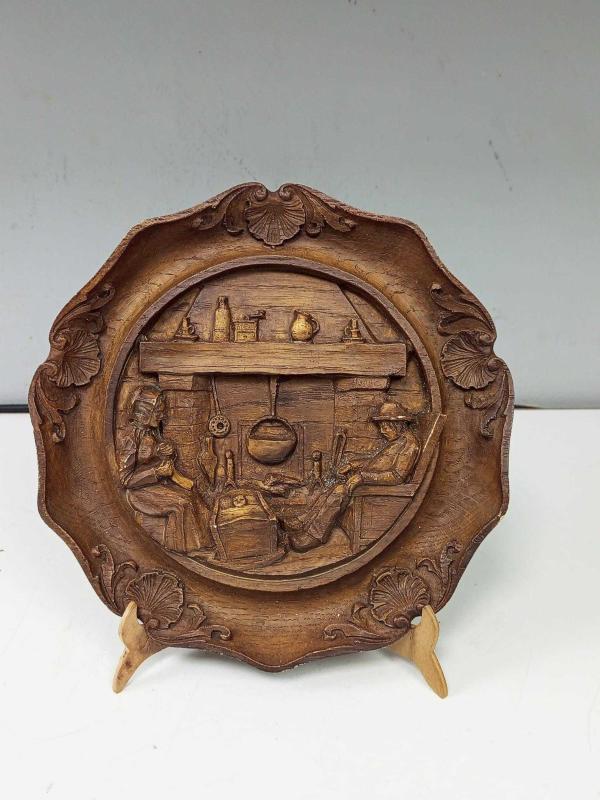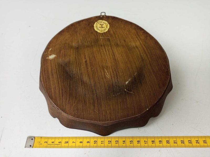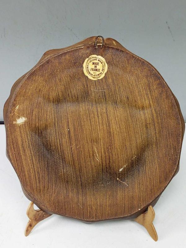 Vintage Fransız Üç Boyutlu Ahşap Stil Duvar Tabağı başlıklı antika/koleksiyon objesi Avrupa menşe’lidir. 1950-1999 arası dönemine aittir.