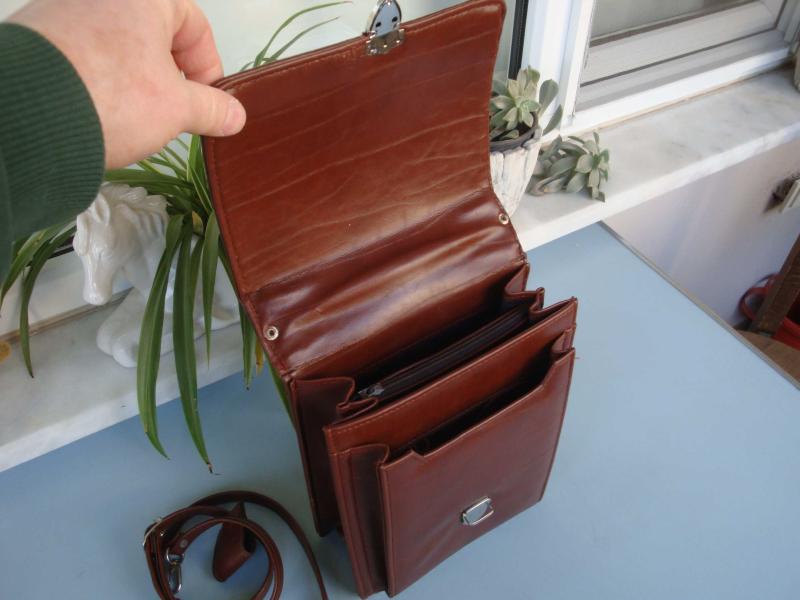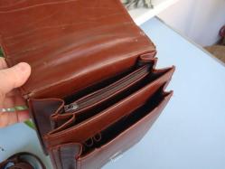 " Vintage " GERÇEK DERİ OMUZ / EL ÇANTASI ( Dik Evrak Çantası ) + Orjinal ASKISI " Ürün gümrük mallarından çıkma olup gayet iyi durumdadır, üst kapak içinde katlanan yerinde zararsız / mini açılma mevcut ( bkz. 6. resim ) ,, bunun dışında herhangi bir hasar bulunmuyor .."