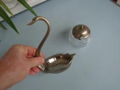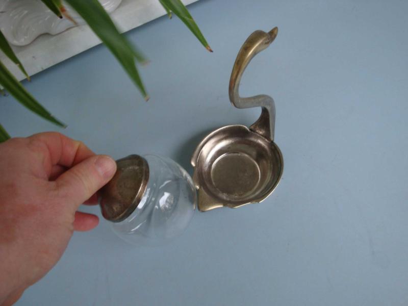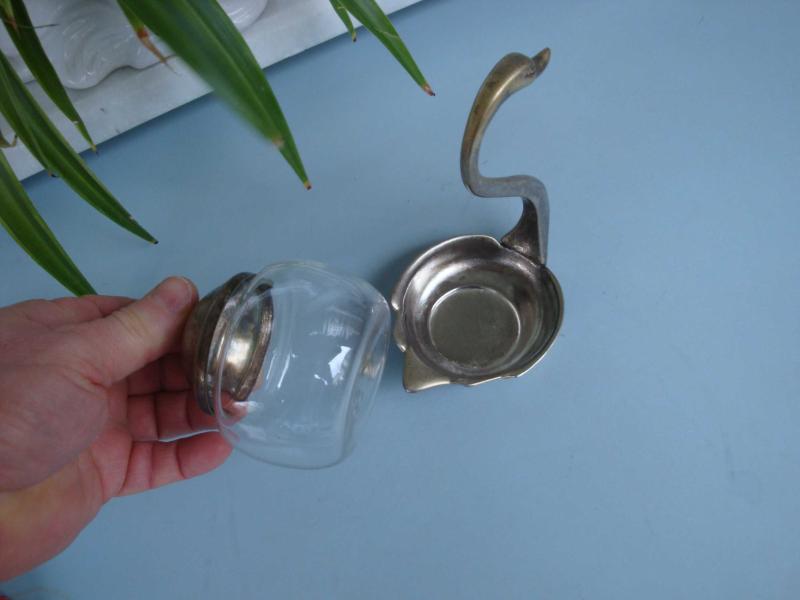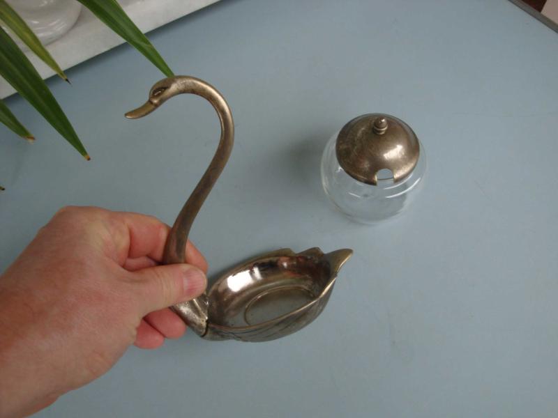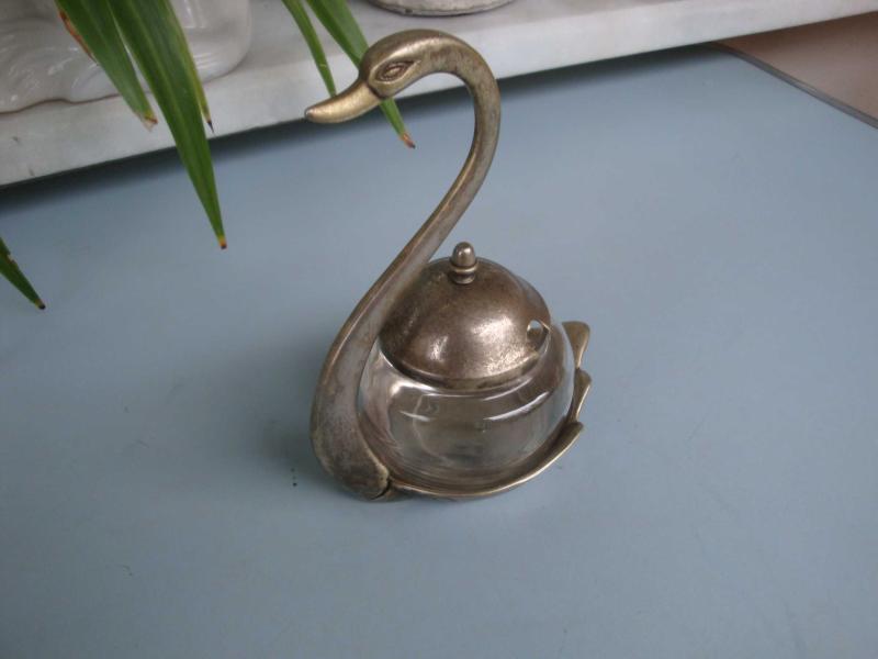 " Vintage " GÜMÜŞ KAPLAMA KUĞU FORMUNDA CAM GÖVDELİ ŞEKERLİK / SOSLUK " Ürün ÇOK YÜKSEK KONDÜSYONDA dır ,, herhangi bir hasar,kusur yoktur " Yükseklik : 16 cm.