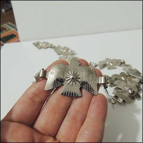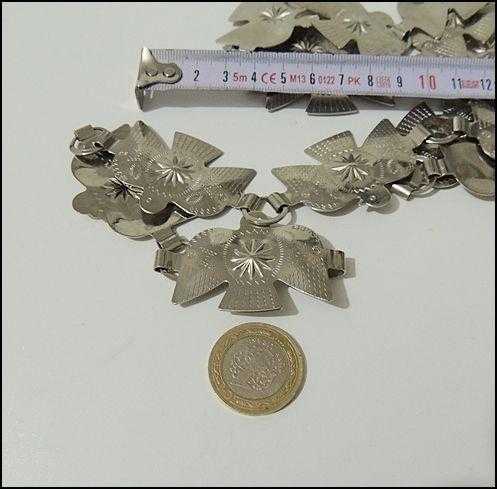 Vintage Gümüş Renk Metal Kuşlar Concho Kemer Amerika başlıklı antika/koleksiyon objesinin menşei belirtilmemiştir. Objenin ait olduğu dönem bilinmeketedir.