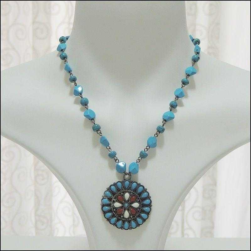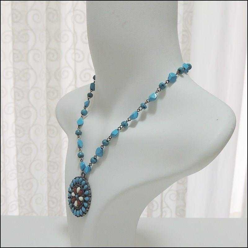 Vintage Gümüş Ton ROBERT AND ROSE İmitasyon Turkuaz ve İmitasyon Mercan Kolye Zuni Style 0070, 10 gün önce kitantik’te satışa sunulmuştur.
