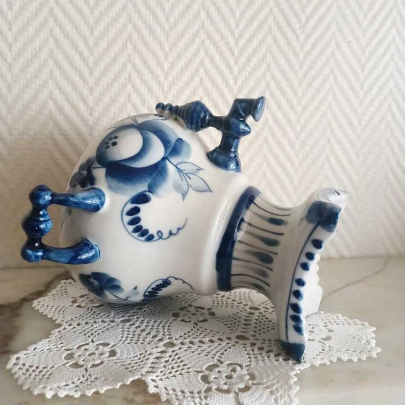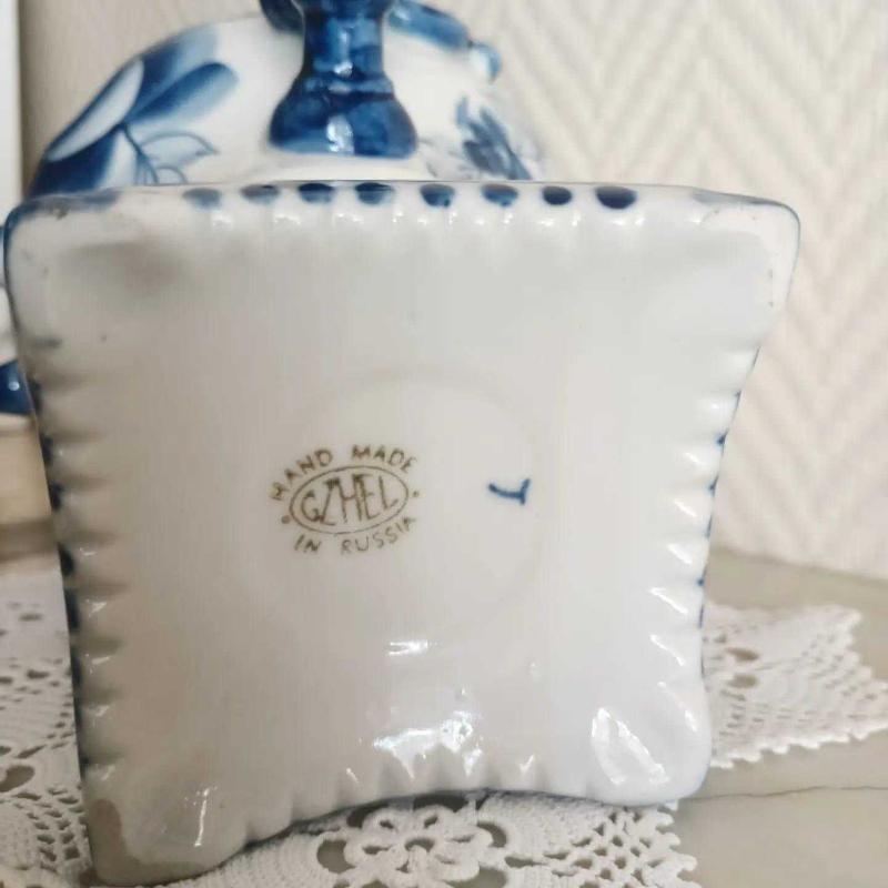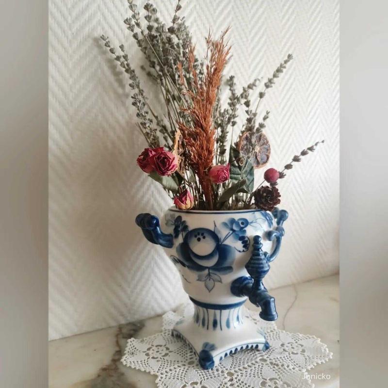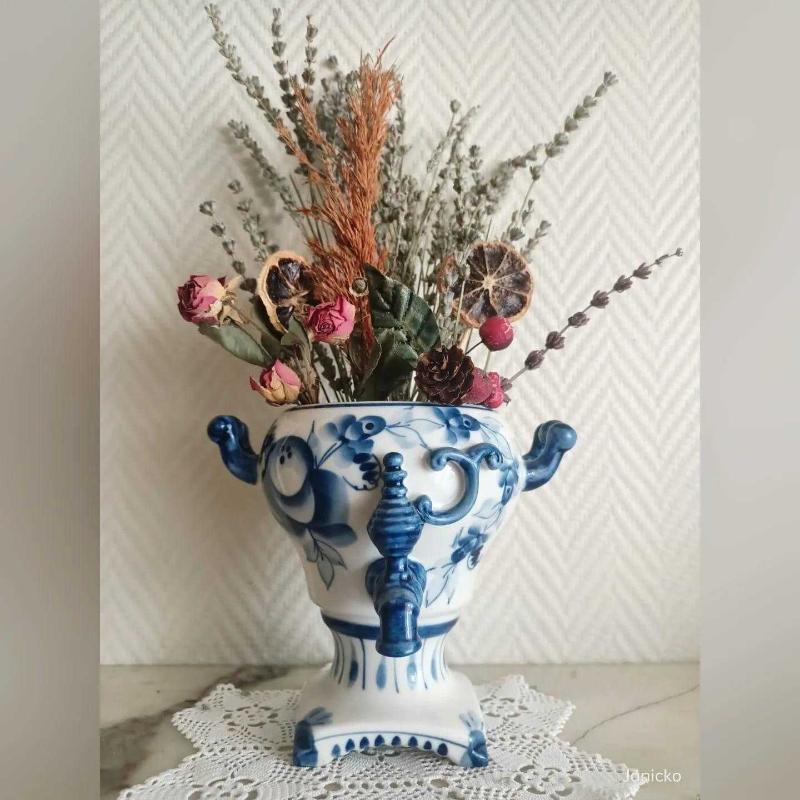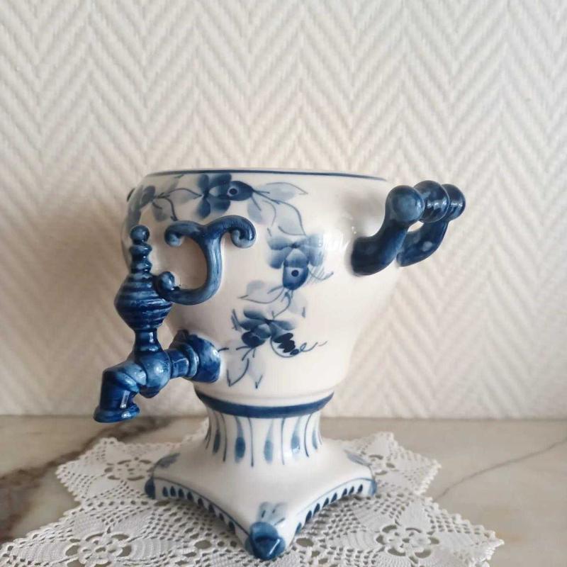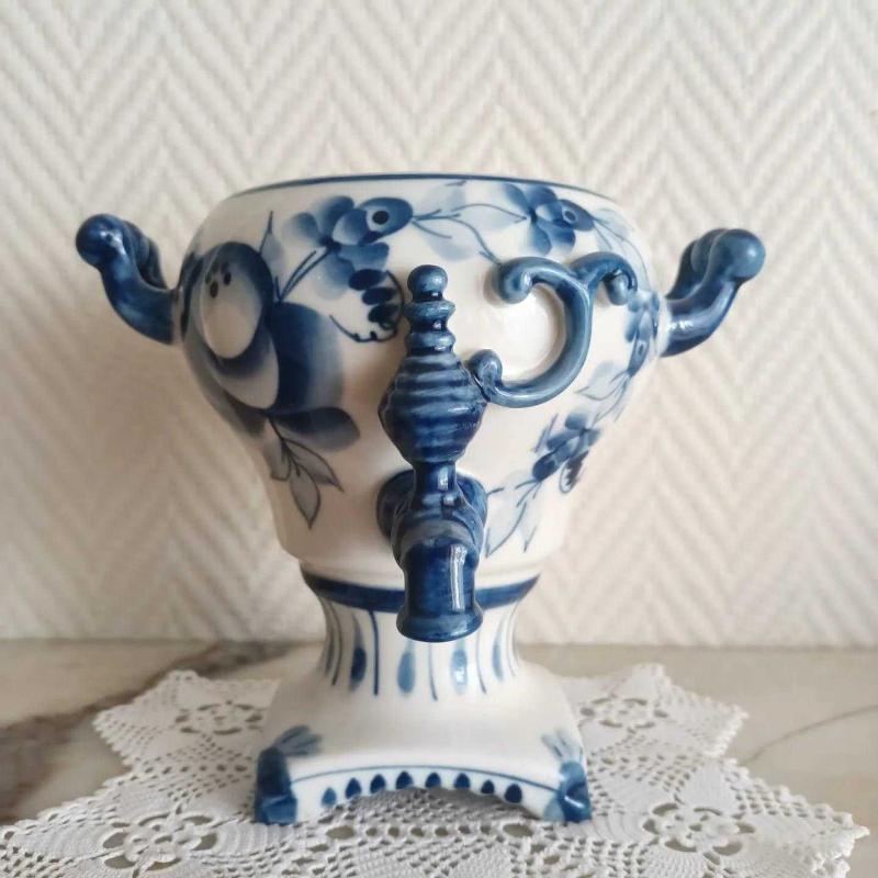 Vintage Gzhel Porselen Semaver Vazo - Damgalı başlıklı antika/koleksiyon objesi Rusya menşe’lidir. 1950-1999 arası dönemine aittir.