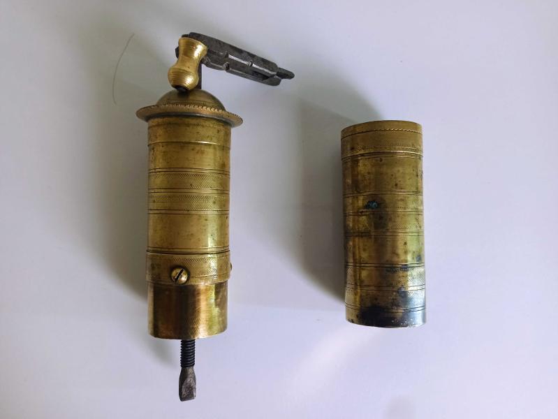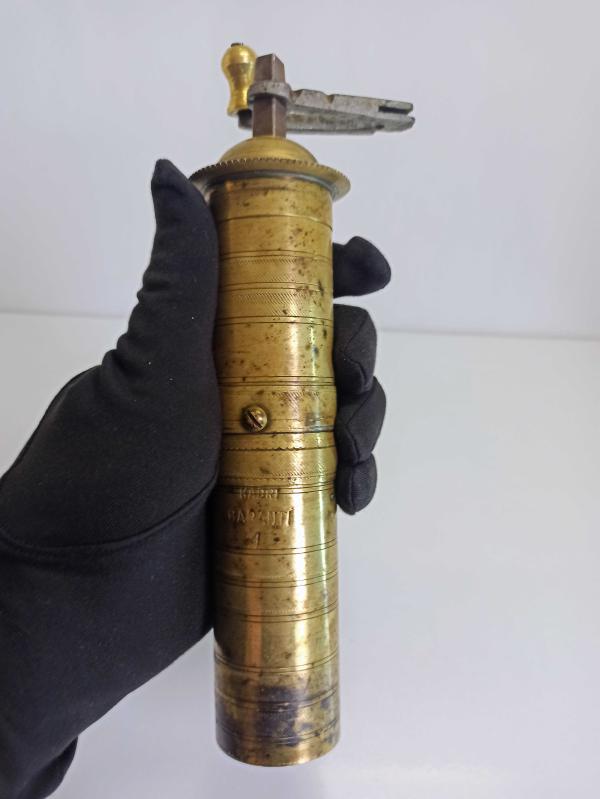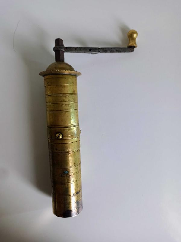 Vintage Metal Kahve Değirmeni - Haliyle Pirinç Kadri Garanti 1 Damgalı Görselde görüldüğü gibi kararmalar vardır. Ölçüler: Yükseklik: 22,5 cm Üst çapı: 5 cm Alt çapı: 4 cm Görseldeki ürün gönderilecektir. Vintage ve 2. el ürünlerde zamanla oluşmuş boya kaybı, çizik, sürtme izi, lekeler, boya taşması, bükülme, renk solması gibi durumlar olabilir. Tüm ürünler detaylı şekilde fotoğraflanmıştır. Göze çarpan her türlü deformasyon fotoğraflarda açıkça görülebilir. Işık ve ekran ayarı farkından dolayı ürünün rengi resimlerden biraz farklı olabilir. Lütfen satın almadan önce görselleri dikkatlice inceleyiniz. Her türlü sorunuz için mesaj atabilirsiniz.