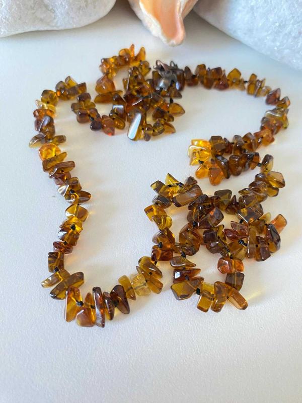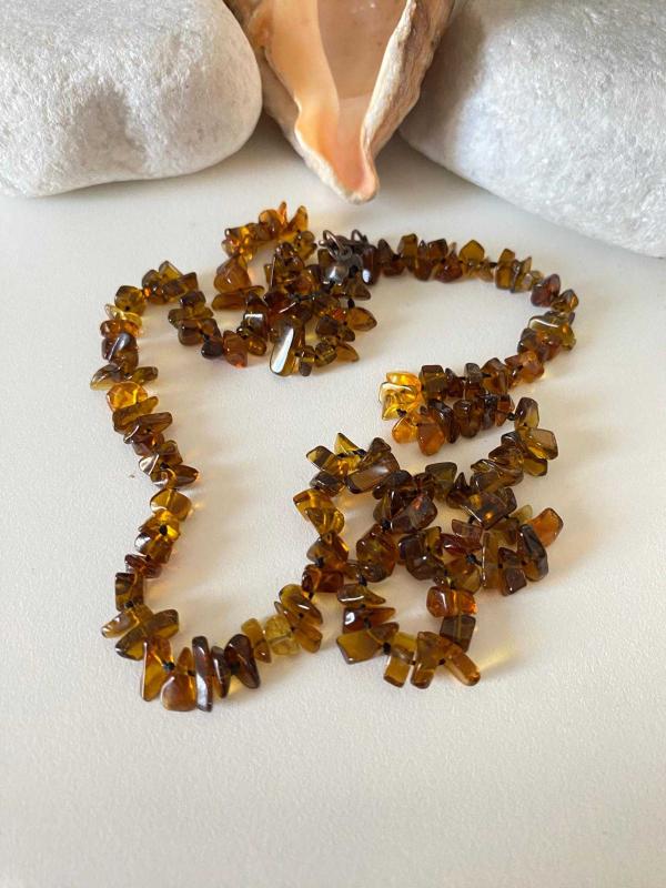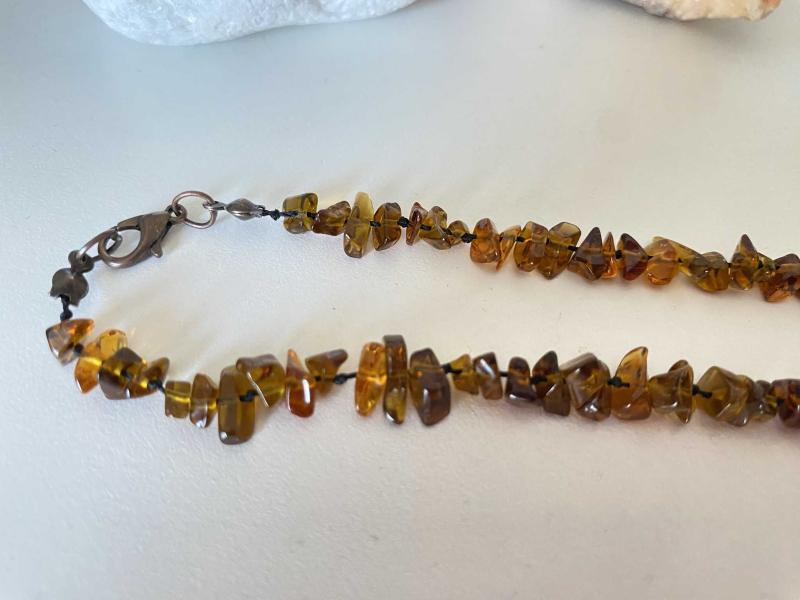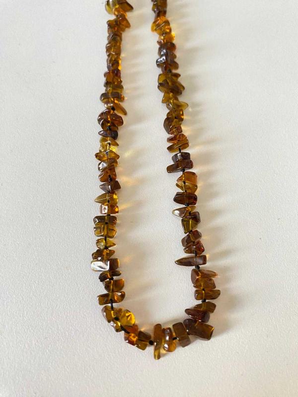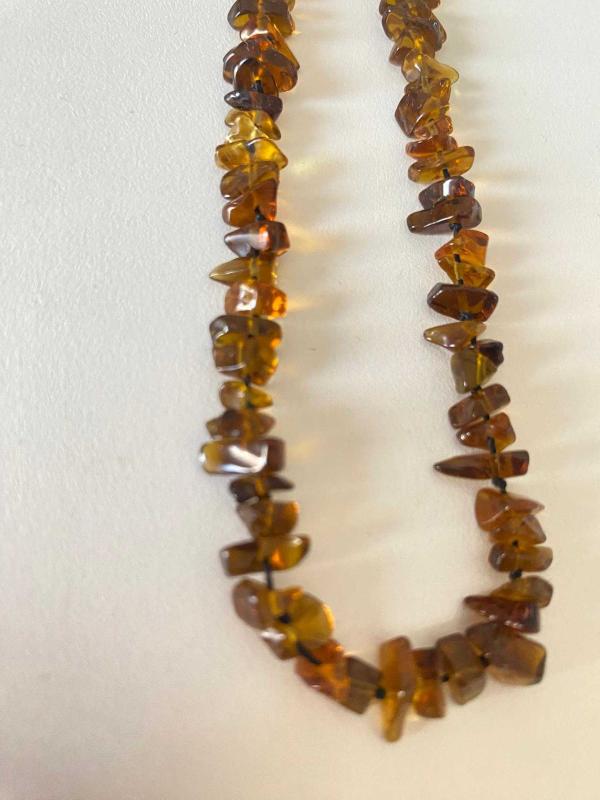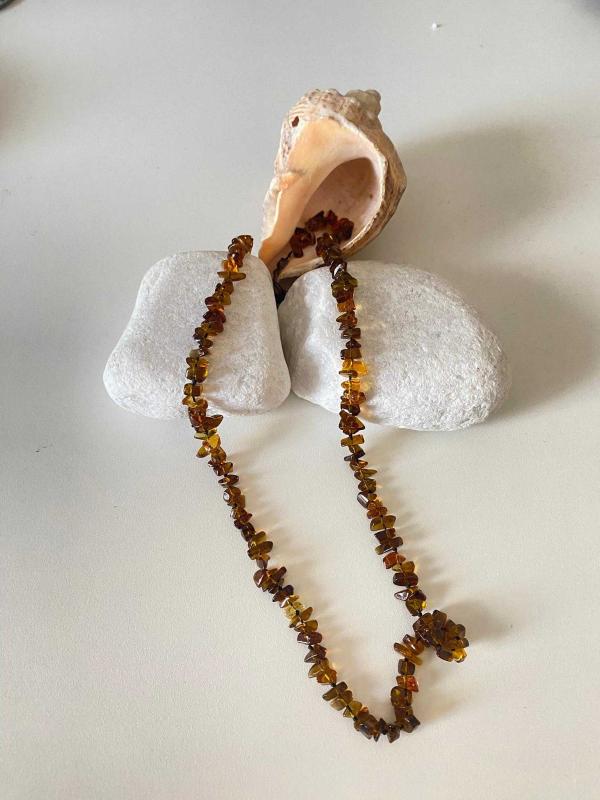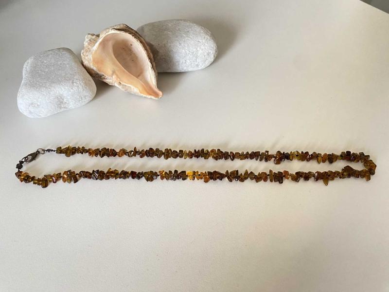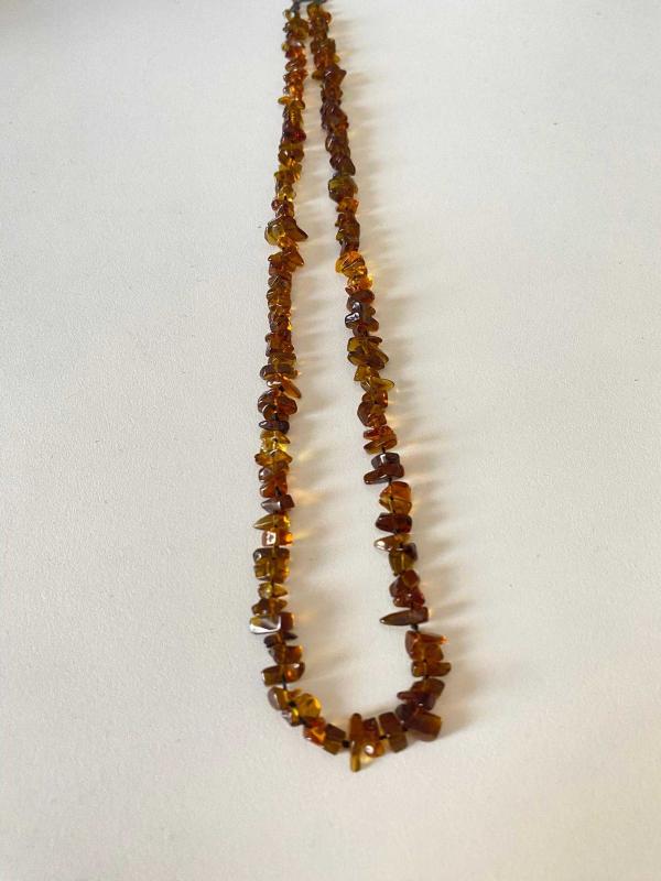 Bu ürün yaklaşık 50 yıllık tamamen sıra Kehribar kesme taşlardan yapılmıştır.Kolye olarak üretilmiştir.Artık bu taşlardan bulmak neredeyse imkansız.Baltik Kehribarı olarak ta geçiyor.Şeffaf görüntüsü ile muhteşem taşlar .Bir mücevher ustasının veya koleksiyonerlerin elinde çok daha değerli hale geleceğinden eminim.Taşların yaklaşık büyüklükleri 2-5 mm, kolyenin uzunluğu 50 cm dir..