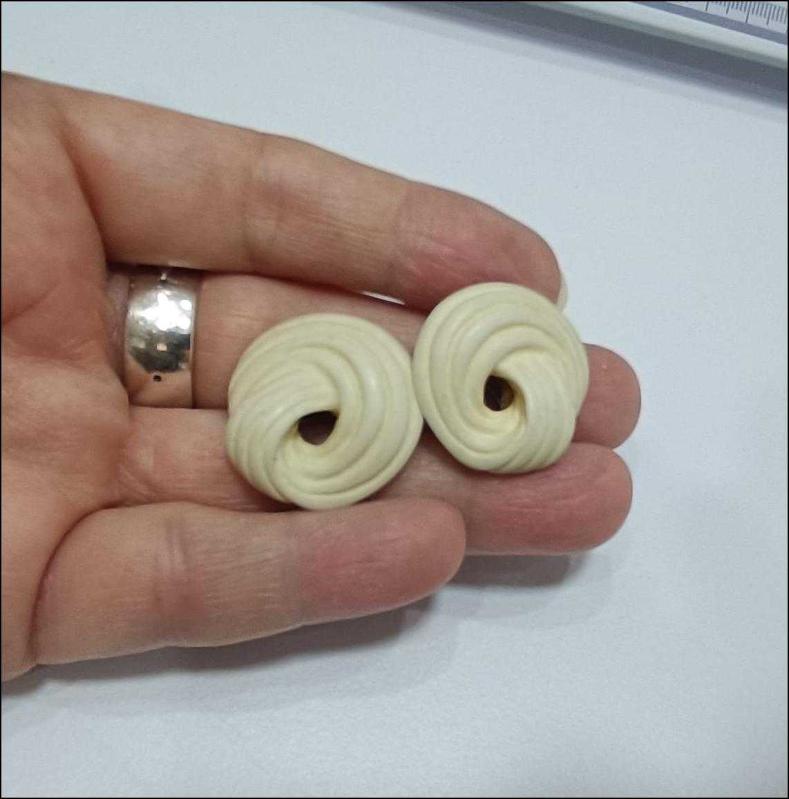 Vintage Kemik Rengi Malzemeden Yapılmış Klipsli Küpeler (91) başlıklı antika/koleksiyon objesinin menşei belirtilmemiştir. 2000 ve sonrası dönemine aittir.