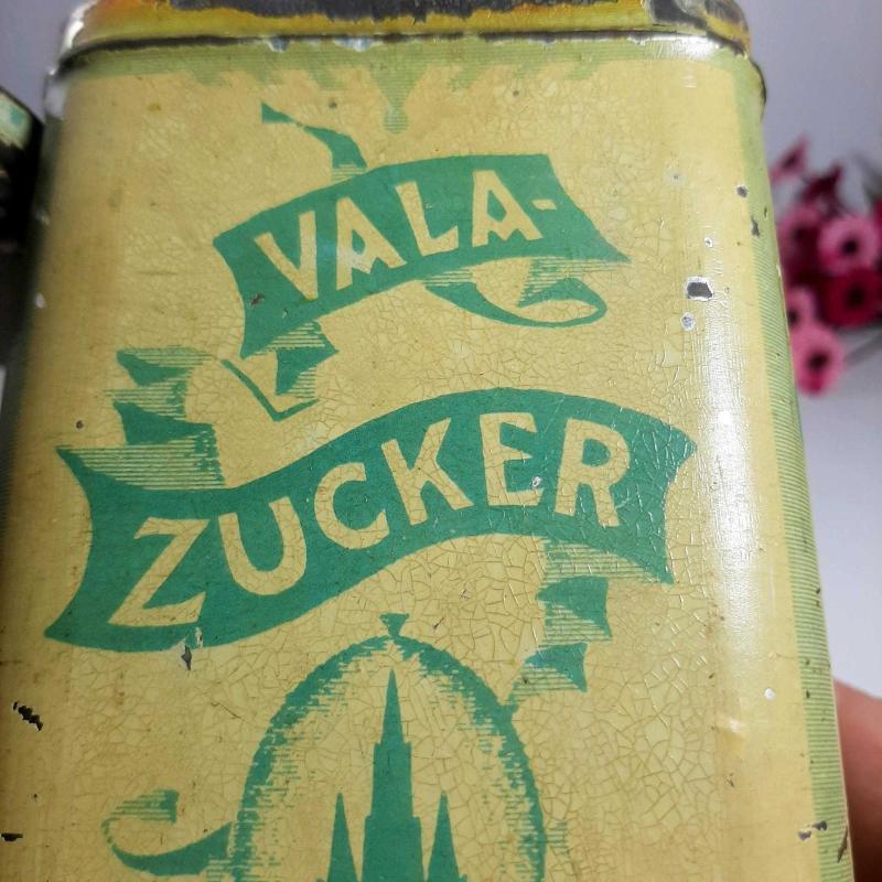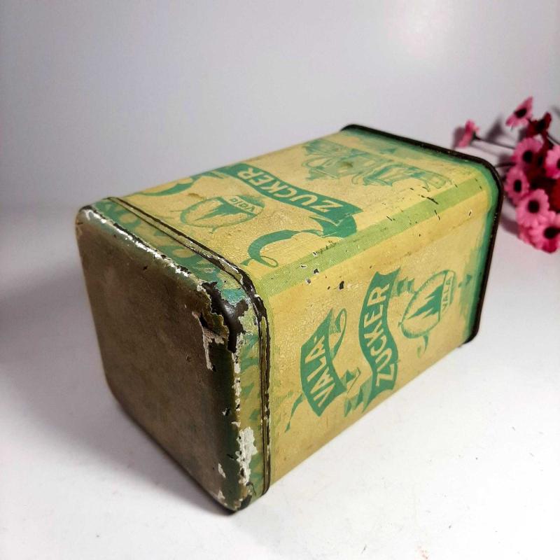 Vintage Kutu Teneke, Türk Metal Saklama Kutusu Retro, Vintage Antika Dekoratif Kutu Depolama, Valla Zuchker, Ev Ofis Dekoru Yükseklik ; 13 cm Diğer Boyutlar; 9 cm X 9 cm