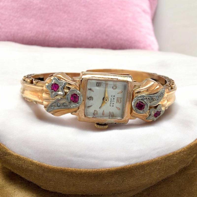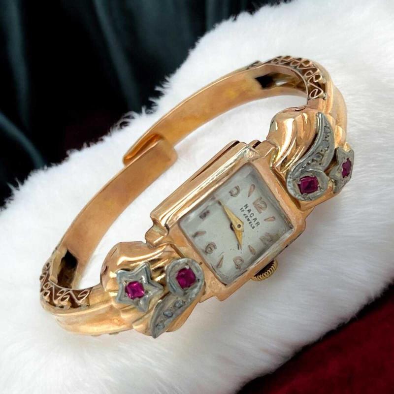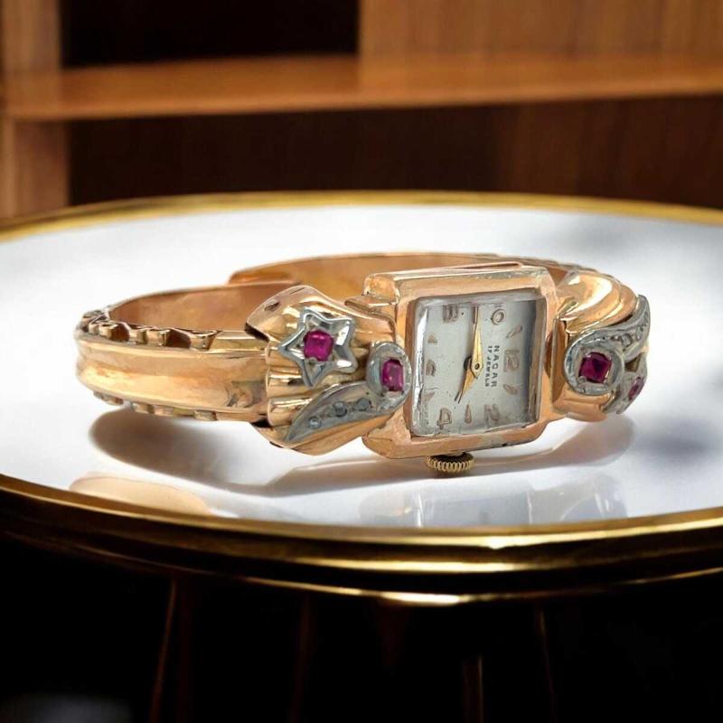 Vintage Nacar 18 Ayar Altın Elmas ve Yakut Taşlı Kurmalı Bayan Kol Saati – 28.22g | Antika / Koleksiyonluk ELM366 #35.74 başlıklı antika/koleksiyon objesinin menşei belirtilmemiştir. Objenin ait olduğu dönem bilinmeketedir.
