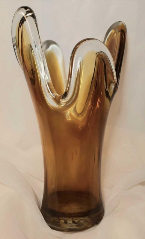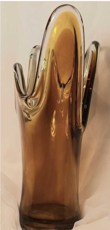Vintage Orta Yüzyıl El Yapımı Üflemeli Amber Salıncak Cam Vazo Salıncak Akış Camı Boy 40 cm