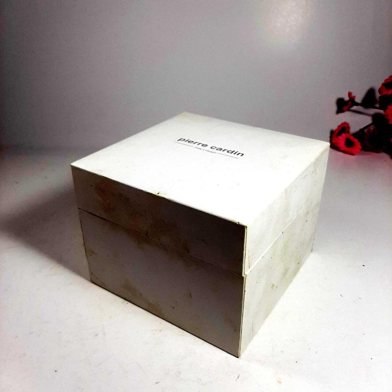 Vintage Pierre Cardin Karton Beyaz Kutu, Retro Beyaz Kutu, Kutu Dekor Ev Ofis, Kutu Hediye Yükseklik ; 8 cm Diğer Boyutlar; 10 cm X 10 cm