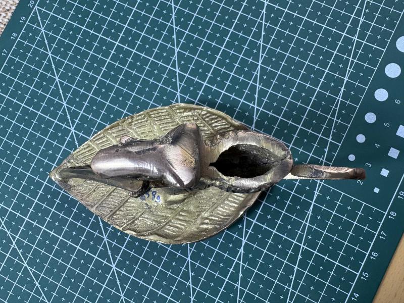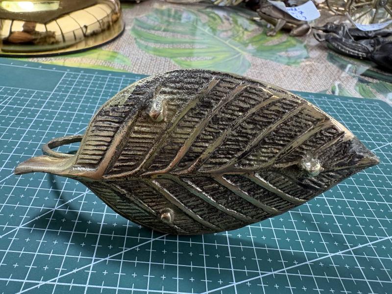 Oldukça özgün ve dikkat çekici tasarıma sahip bu pirinç fare figürlü şamdan, koleksiyon ve dekorasyon severler için özel bir parçadır. El işçiliğini andıran detayları, karakteristik yüz ifadesi ve doğal patinası ile otantik bir görünüm sunar. Alt kısmındaki geniş taban ve üstteki mum haznesi ile hem dekoratif hem de fonksiyonel kullanım sağlar. Ürün Özellikleri: * Malzeme: Pirinç * Ağırlık: 258 gram * Uzunluk: yaklaşık 13 cm * Derinlik: yaklaşık 6 cm * Yükseklik: yaklaşık 8 cm Yaşına bağlı olarak yüzeyde doğal patina ve kullanım izleri mevcuttur. Dekoratif amaçlı ya da mumluk olarak kullanıma uygundur. Raf Kodu: TUF-FARE 2