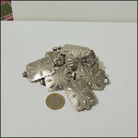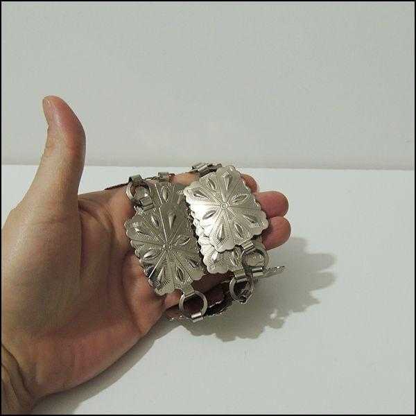 Vintage SİLVEL Marka Gümüş Renk Metal Concho Kemer Amerika başlıklı antika/koleksiyon objesinin menşei belirtilmemiştir. Objenin ait olduğu dönem bilinmeketedir.