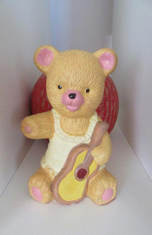 Vintage Seramik Biblo (Porselen Görünümlü) Gitar Çalan Ayıcık 12.5 cm başlıklı antika/koleksiyon objesinin menşei belirtilmemiştir. 1940 sonrası dönemine aittir.