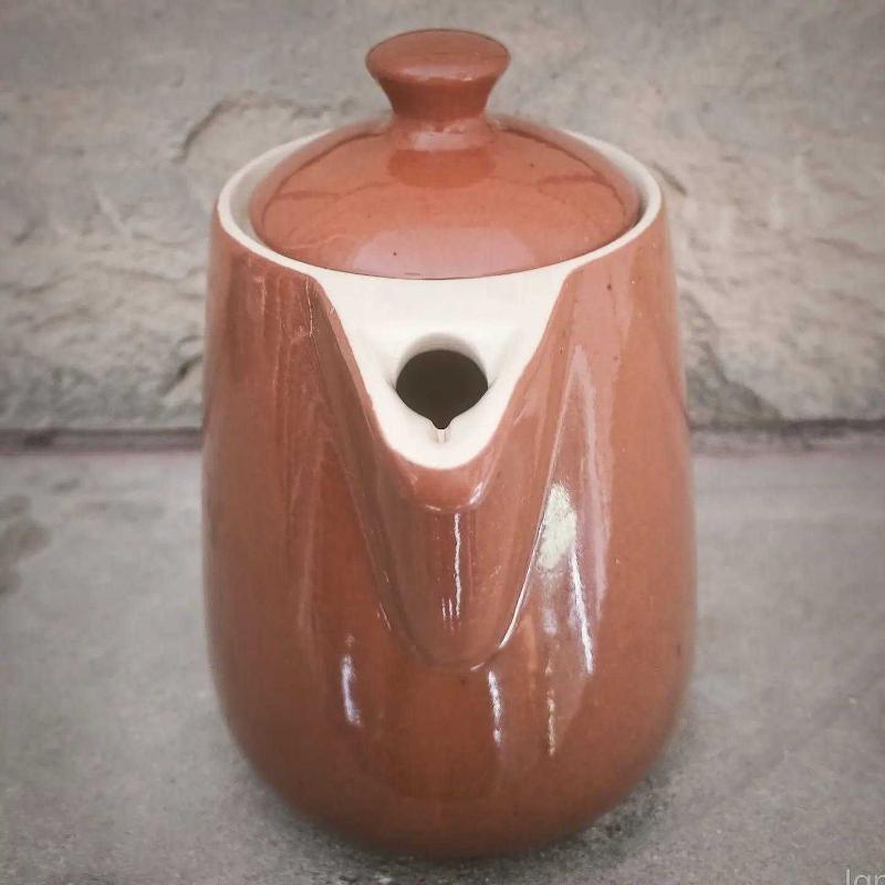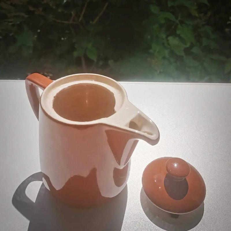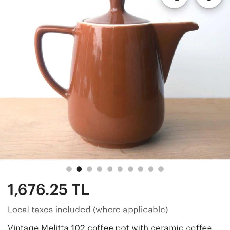 1960'lardan gelen bir güzellik... Hem Fransa'da hem Almanya'da üretimi bulunan, ağzı damlalıklı, 700 ml hacimli, 16 cm yüksekliğindeki kahve potumuz. Orijinal üretimlerde dripper ile birlikte satılmıştır. Demliğin kapağı açılarak üzerine yerleştirilen dripper ile kahvenin demlenmesi, daha sonra demliğin kapağı kapatılıp ocak üzerine alınarak ısının korunması ve elektrikli filtre kahve makinesi mantığı ile tüketimin sağlanması amaçlanmıştır. Fakat bu ürünün seramik dripperı günümüze ulaşmamıştır. Yaşının ufak tefek izlerini üzerinde taşısa da dışarıdan görülebilen ya da kullanima engel teşkil eden (ki denedik:) bir sorunu bulunmamaktadır. Yurtdışı fiyat örneği görsellerde mevcuttur. . . . #vintage #60s #altmışlar #coffeepot #mocha #seramik #porselen #kahvepotu #demlik #antika #antiques #rare #nadir #retro #porselendemlik #seramikdemlik #pottery #coffeelovers #onlineshopping @janickoantik