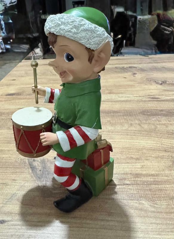 Vintage Tarzı Davulcu Noel Elfi Figürü.Elf davulu poli Noel Noel dekoru Timstor Kırık atık yok Boy 26 cm