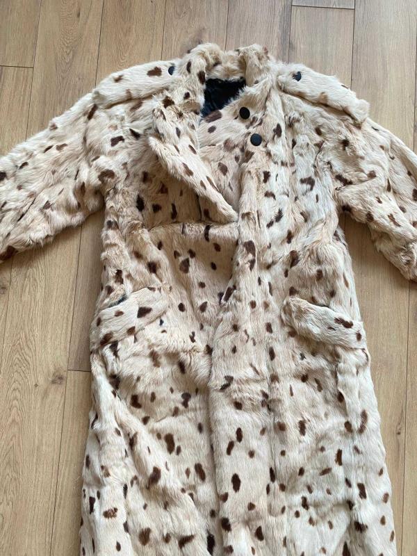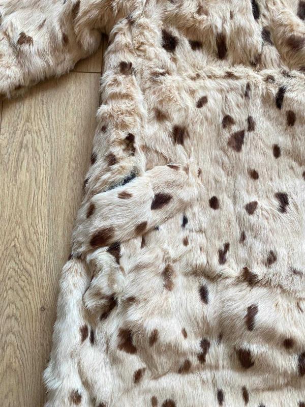 1980'lerden çok iyi korunmuş hiç giyilmemiş, dönemin Kürk Paltosu, Alman Echter Pelz Leopar baskı Tavşan Kürkü Palto. Ürün özel kılıfı ile gönderilecektir. Kürk paltoda kesinlikle dökülme yoktur. Ayrıca gizli düğmeleri mevcuttur. Fotoğraflarda bulabilirsiniz. Video gönderilir. Palto Boy :125 cm / Göğüs :110 cm/ İki kol arası : 55 cm