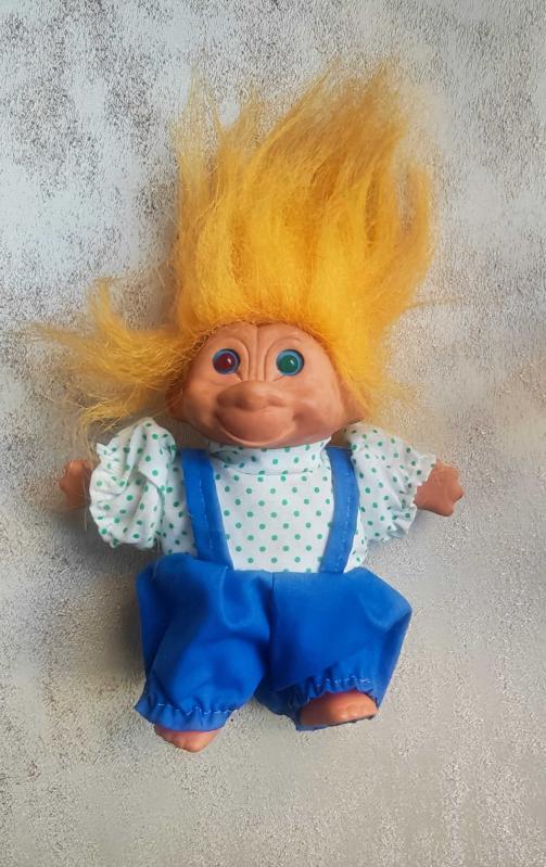15cm boyunda ( saçlar hariç) , sorunsuz durumda Vintage Troll Bebek . Gövde dolgu kumaş, eller, ayaklar, kafa kauçuk malzemeden.