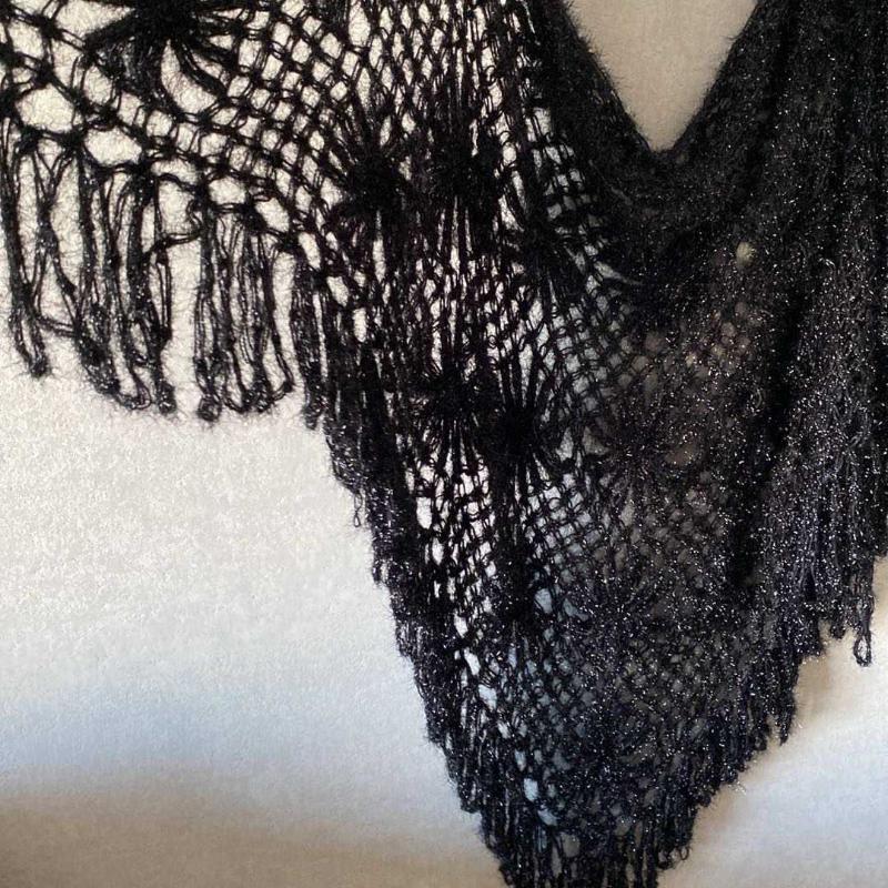 Simli ipten el örme üçgen şal Flamenko dansçıları için harika bir model .Temiz sorunsuz ve çok şık 100cmX100 CM