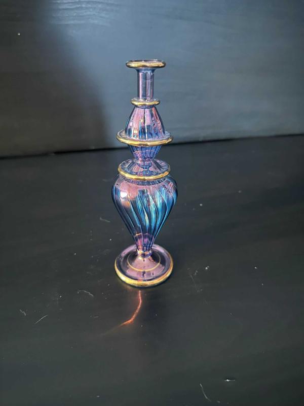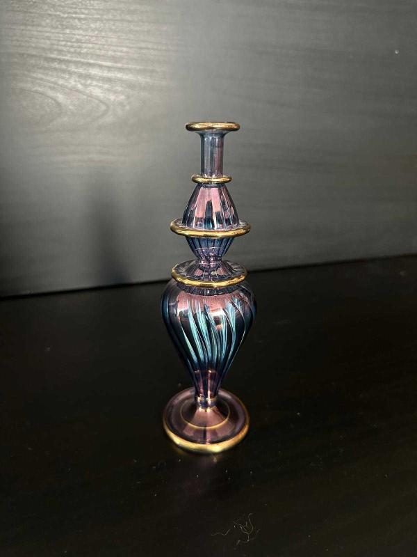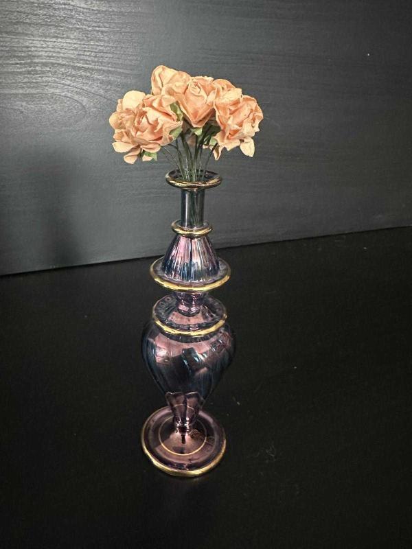 Vintage Üfleme Cam Parfümlük / Vazo başlıklı antika/koleksiyon objesi Türkiye menşe’lidir. 1980-1999 arası dönemine aittir.