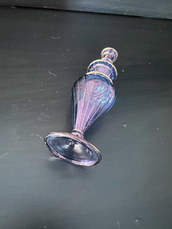 Cam parfümlük. Kapağı yoktur, bu nedenle vazo olarak kullanılabilir. Kusursuz durumdadır.