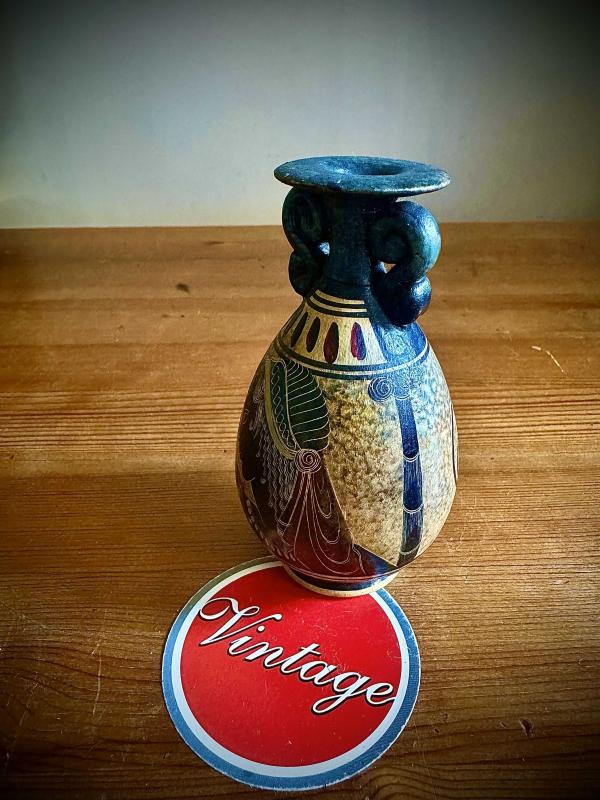 Vintage Yunan el işçiliği,antik amfora tarzında küçük seramik vazo, en son 4 gün önce güncellenmiştir.