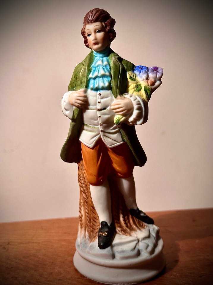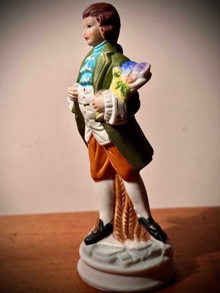 iadesiz satıştır... Zarif işçiliği ve elde boyanmış detaylarıyla öne çıkan vintage ,damgalı ,elinde çiçekler olan porselen genç adam biblosu …Zarif işçiliği ve elde boyanmış detaylarıyla öne çıkan vintage biblo. Altında ustasına ait mavi el işaretli bir damga bulunuyor. Yumuşak geçişli renkler, temiz hatlar ve dönemine özgü kabartmalı kaidesiyle koleksiyonlara değer katan özel bir biiblodur… 15,5 cm boyunda, 6 cm enindedir. Her vitrinde şıklığıyla dikkat çeken, nadir bulunan dekoratif bir biblo…. #Vintage #biblo #koleksiyon #koleksiyonluk biblo #vintage koleksiyonluk biblo
